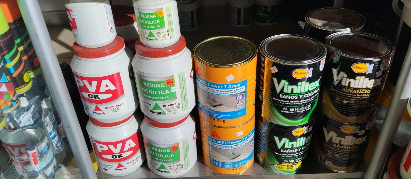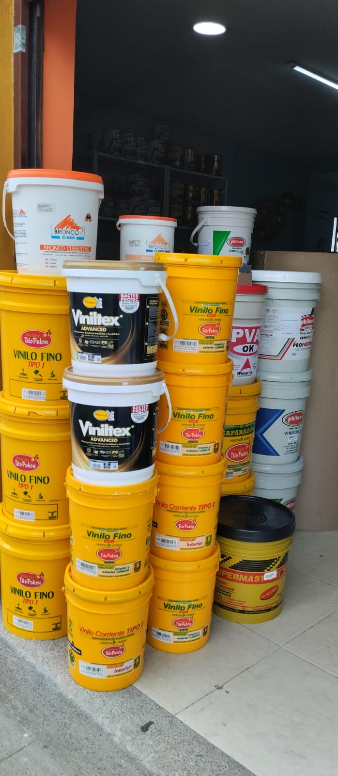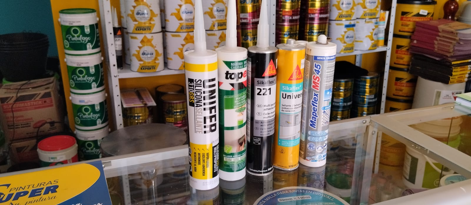 Sikaflex universal, sikaflex 221, sika fil power, sika transparente , PVA, acronal, emulsión asfáltica texsa, ED9 Texsa, cinta tapagoteras texsa, lijas, varsol , brochas, rodillos, estuco acrílico, bronco, corona paraguas, Zócalo, tela poliester